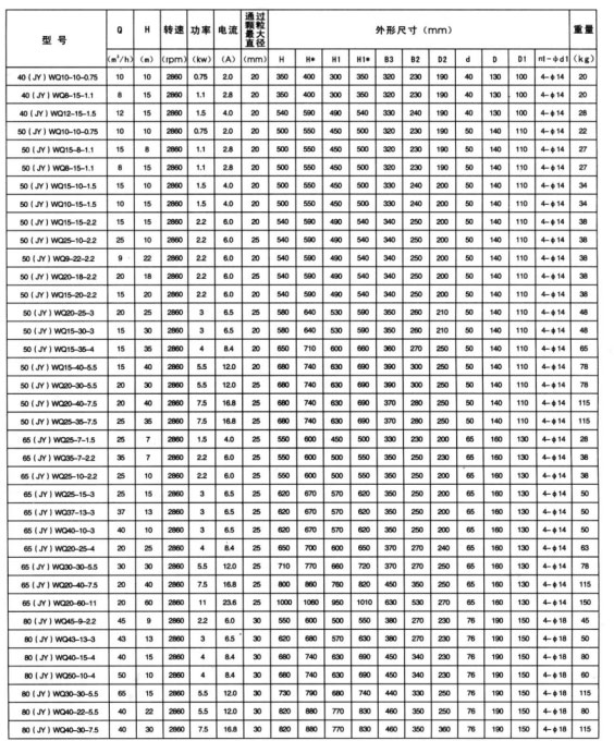 WQ型無堵塞潛水排汙泵由電機與泵兩部分組成,二者通過油隔(gé)離室及機械(xiè)密封組(zǔ)件隔開,屬機電-體化產品(pǐn)。電機與泵合用同軸(轉子)整(zhěng)個(gè)水泵長度短,結構緊湊。配備多種保護(hù)裝置(zhì),使得泵運行可靠。其主要部件作用如下: