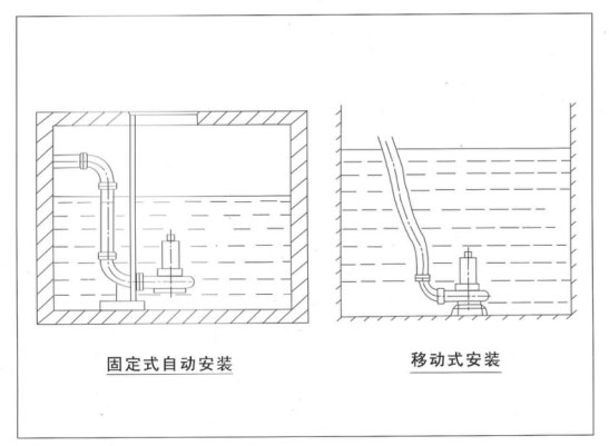 3.該係列泵的安裝有固定式和(hé)移動式(shì)兩種。當采用固定(dìng)式自動(dòng)安裝時,應將鏈索分別穿進(偏離泵出水口,其連線應平行於泵出水口)的兩個吊環螺釘或起吊板中上下起吊電泵。均勾(gōu)緩慢地(dì)沿著導軌下滑,直到自(zì)動耦合到位。當采用移(yí)動式安裝時(shí),先將軟管套好,用(yòng)鏈索穿進兩個吊環上下起吊電泵,注(zhù)意切不能將電纜當作繩索使用(yòng),以免(miǎn)發生(shēng)危險。
